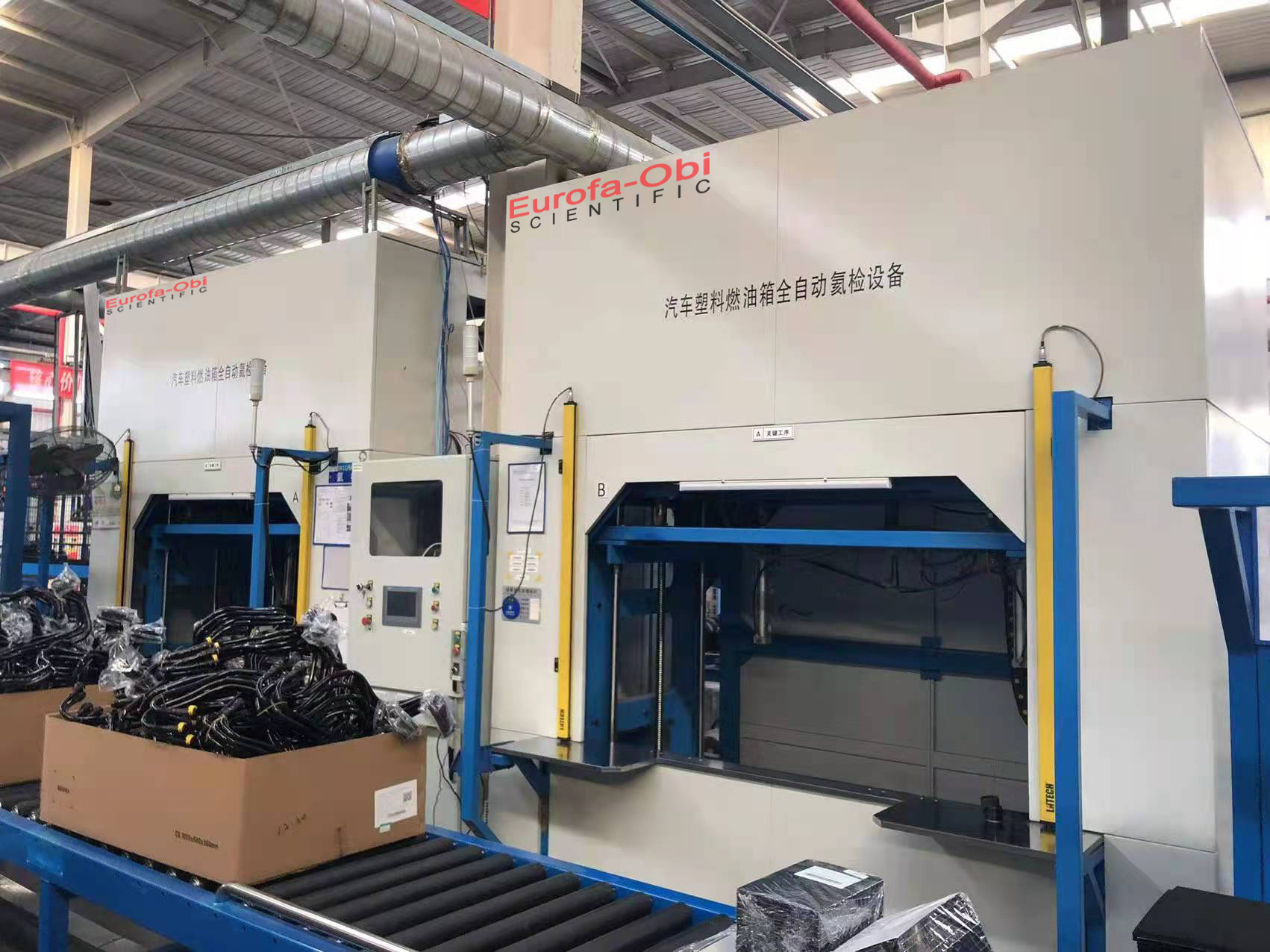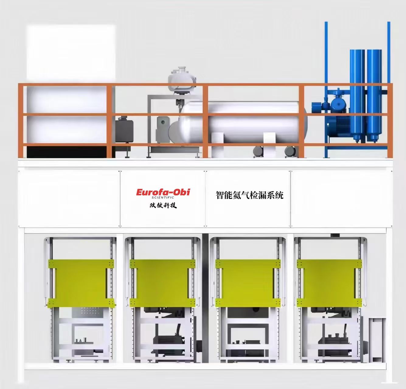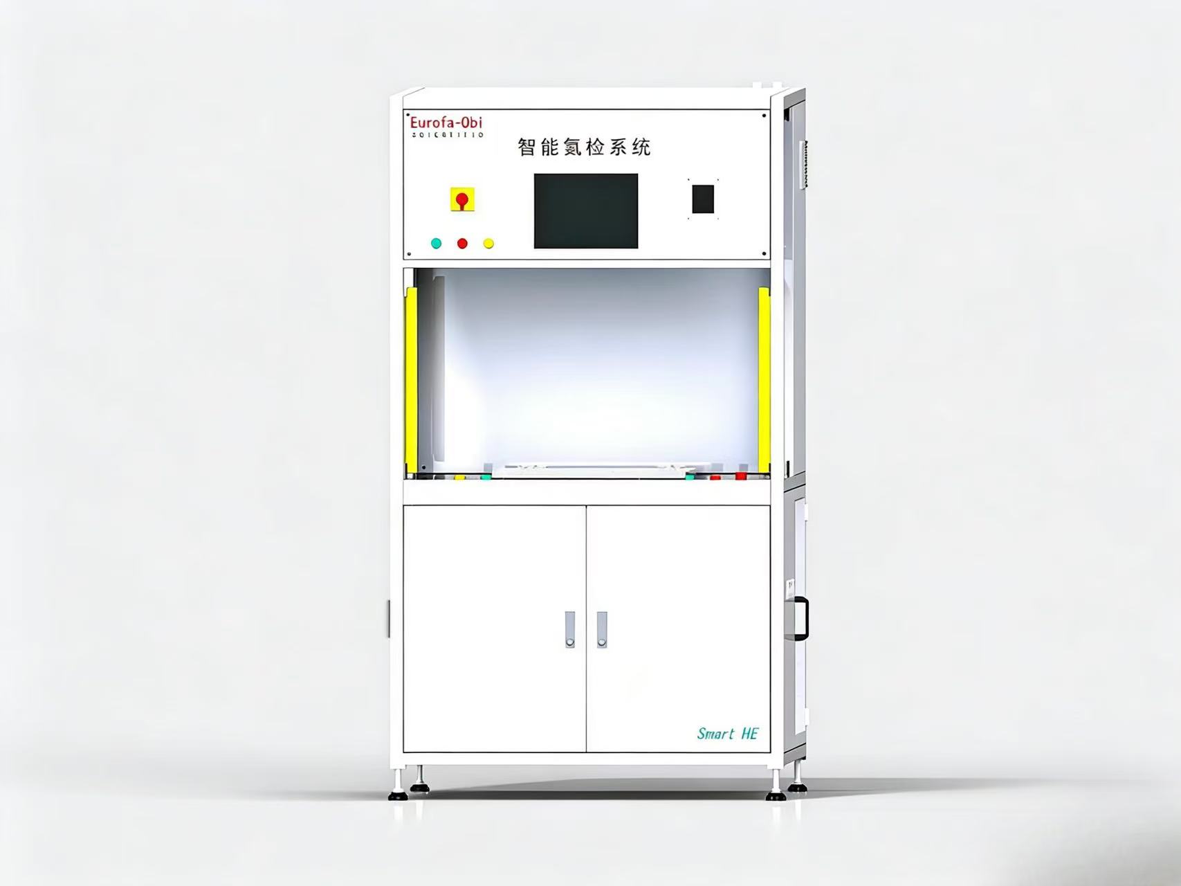 该设备可以对水冷板/液冷板/汽车换热器/空调管路等进行氦气检漏,从而检查和衡量其中的损耗。设备含有的质谱仪将氦作为跟踪气体,能够测量出元件的总体损耗。待测试的元件被插入真空腔或分析腔内,首先进行检大漏测试如果合格,由充注制定压力的氦气。在达到合适的真空值时,质谱仪就会和分析腔联通,从而测量出待检产品处溢出的氦气量。在此模式下,可以测量损耗值。设备运行完全自动,并且完全PLC控制。